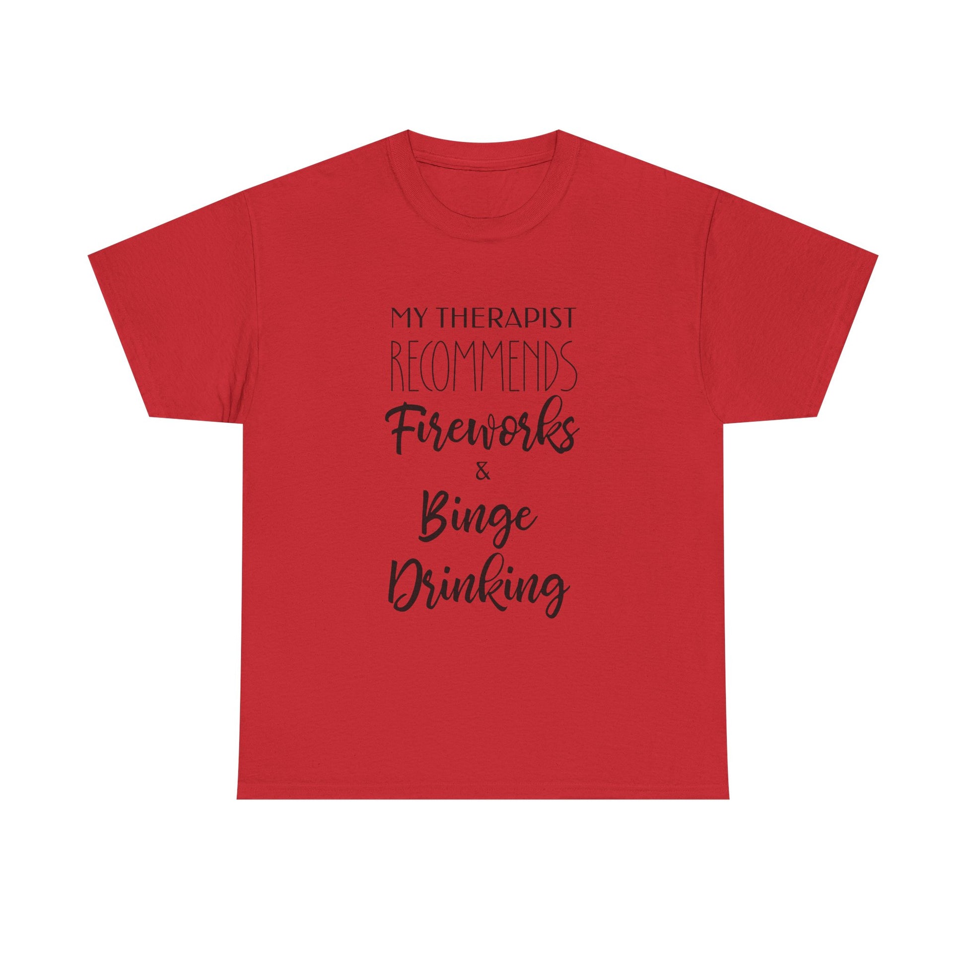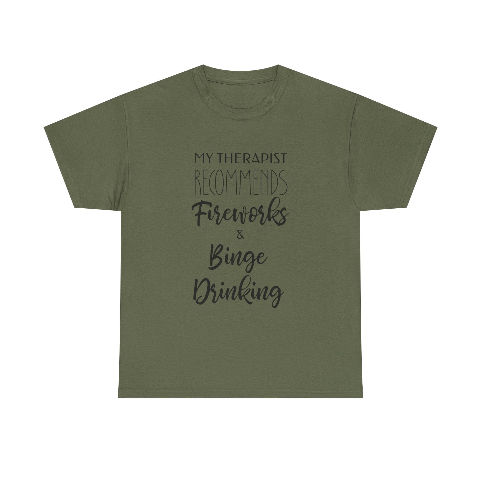 My Therapist Recommends Fireworks and Binge Drinking Funny Therapy Tee