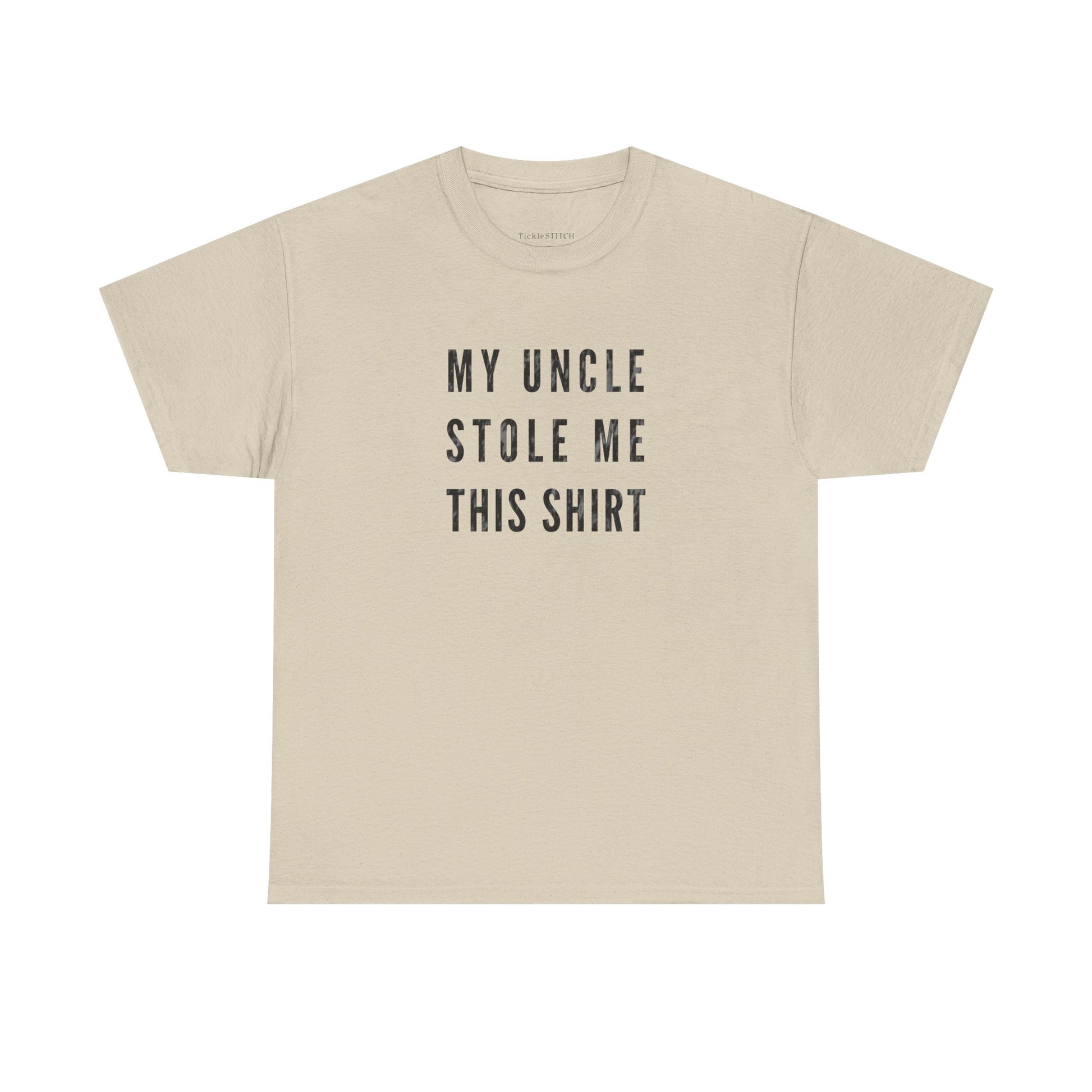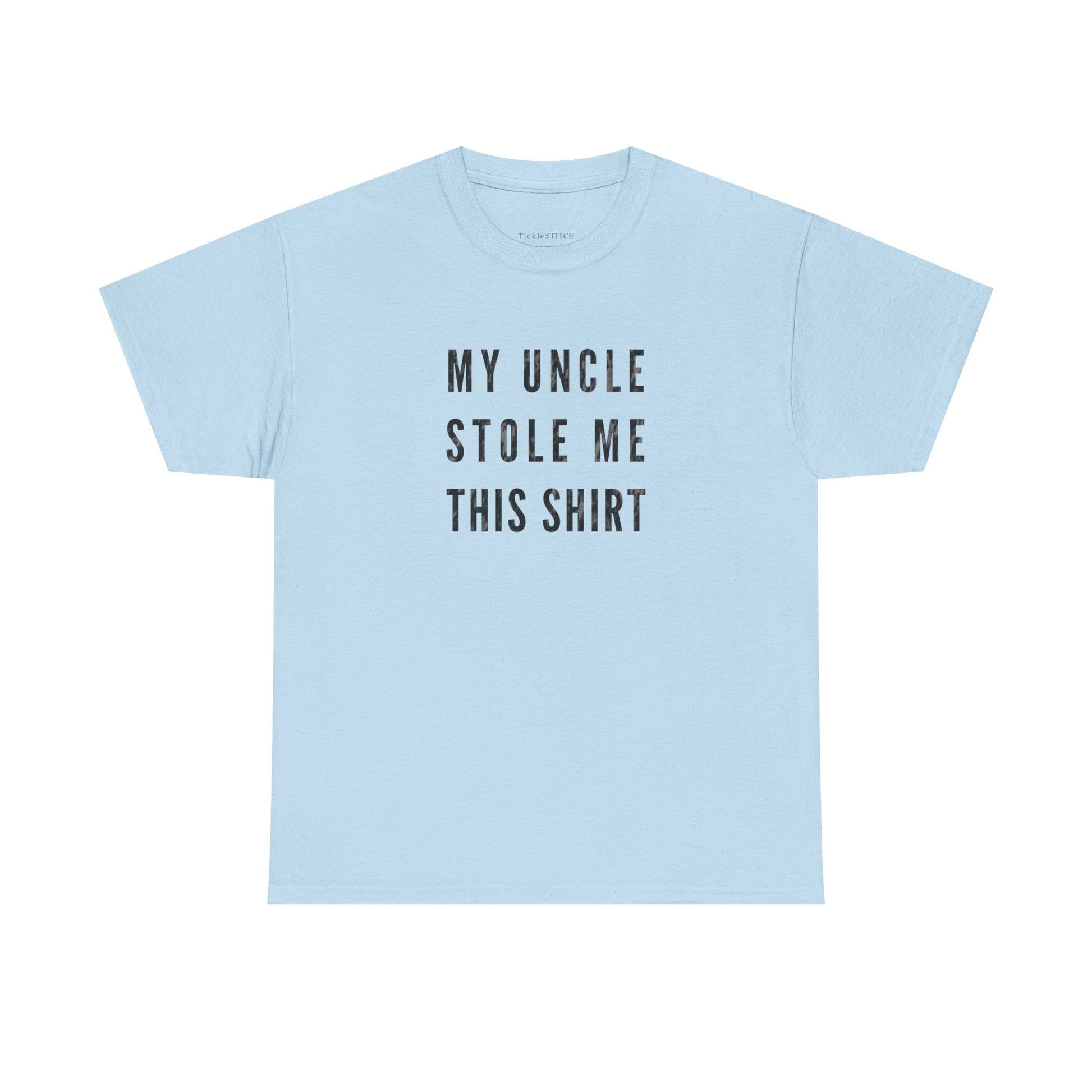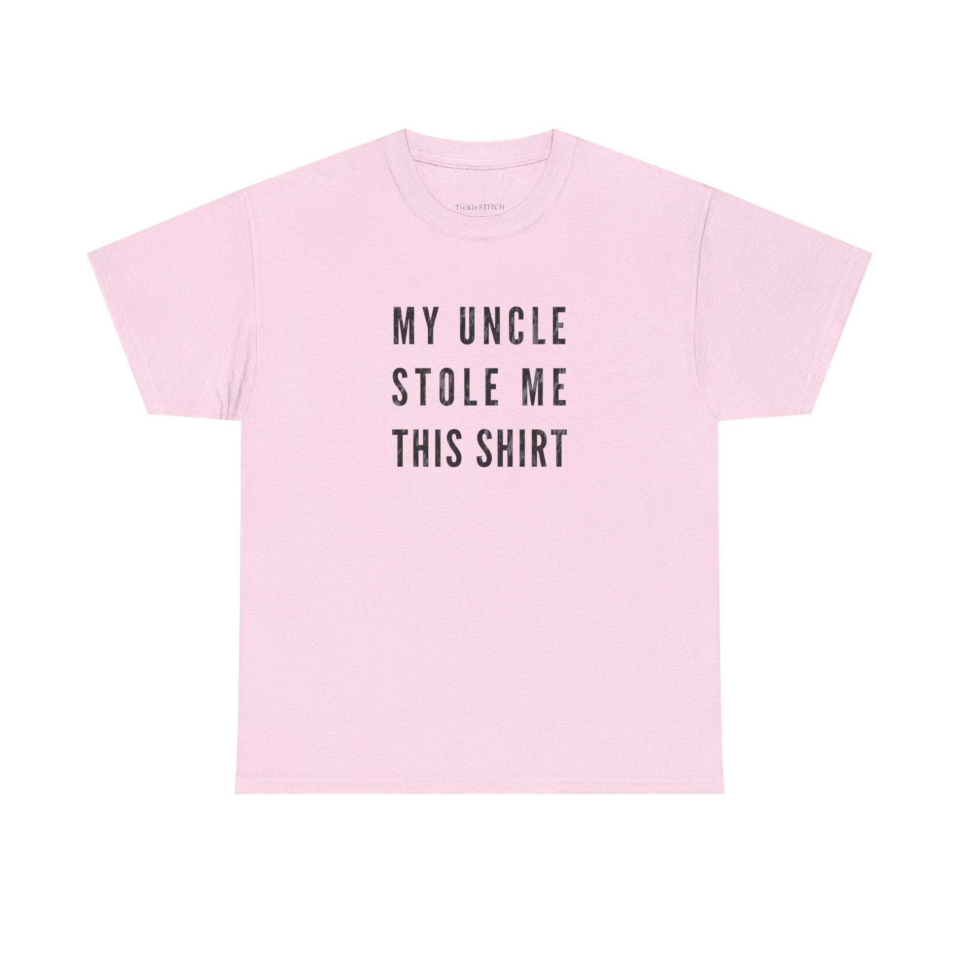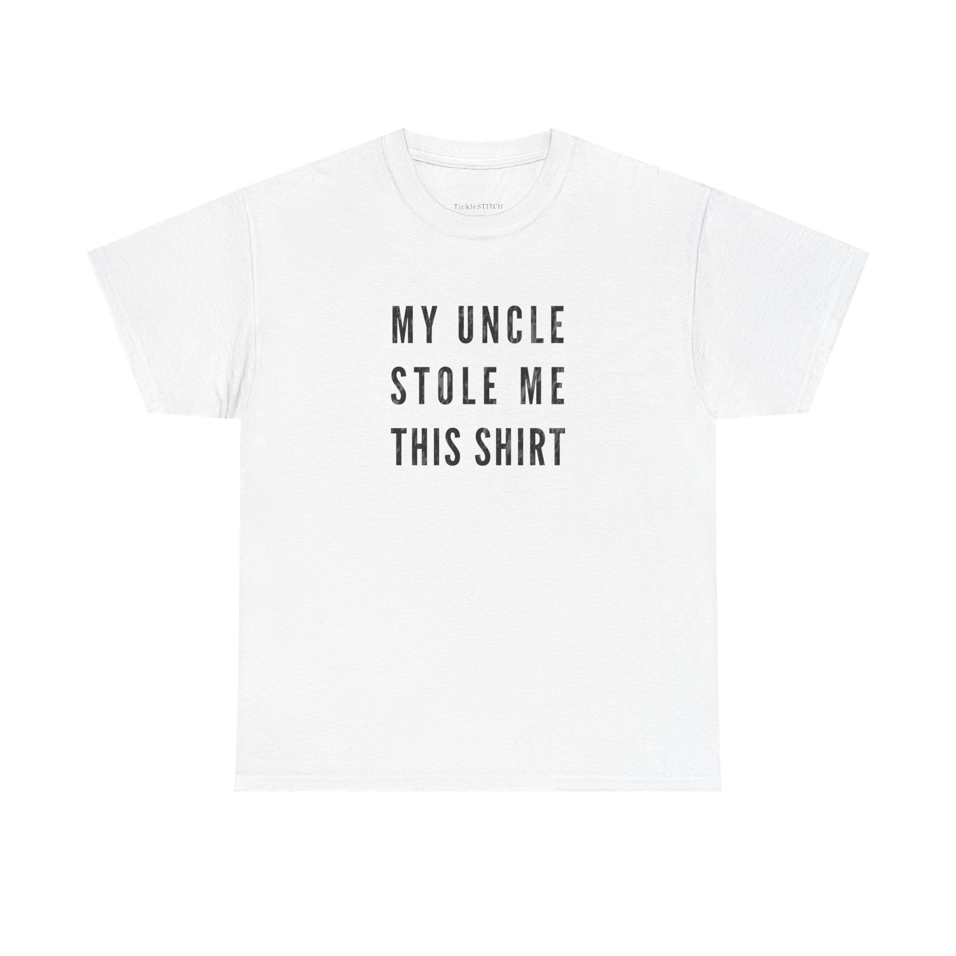 Embrace the playful side of family dynamics with our 'My Uncle Stole Me This Shirt' tee, a perfect blend of humor and heartfelt connection. This unique design celebrates that special, often mischievous, bond between uncles and their nephews or nieces. It's an ideal gift from an uncle, or a witty statement piece for anyone who's ever received a 'stolen' treasure from their beloved relative. Crafted for comfort and style, this shirt is more than just apparel; it's a conversation starter, a nod to inside jokes, and a testament to the funny, sometimes unconventional, ways families show love. Whether it's for a birthday, holiday, or just because, this tee captures the essence of uncle humor and the enduring family bond, making it a memorable present for any family member who appreciates a good laugh and a touch of playful theft in their family narrative. Show off your unique family story with this charming and amusing shirt, celebrating the joy and laughter an uncle brings.