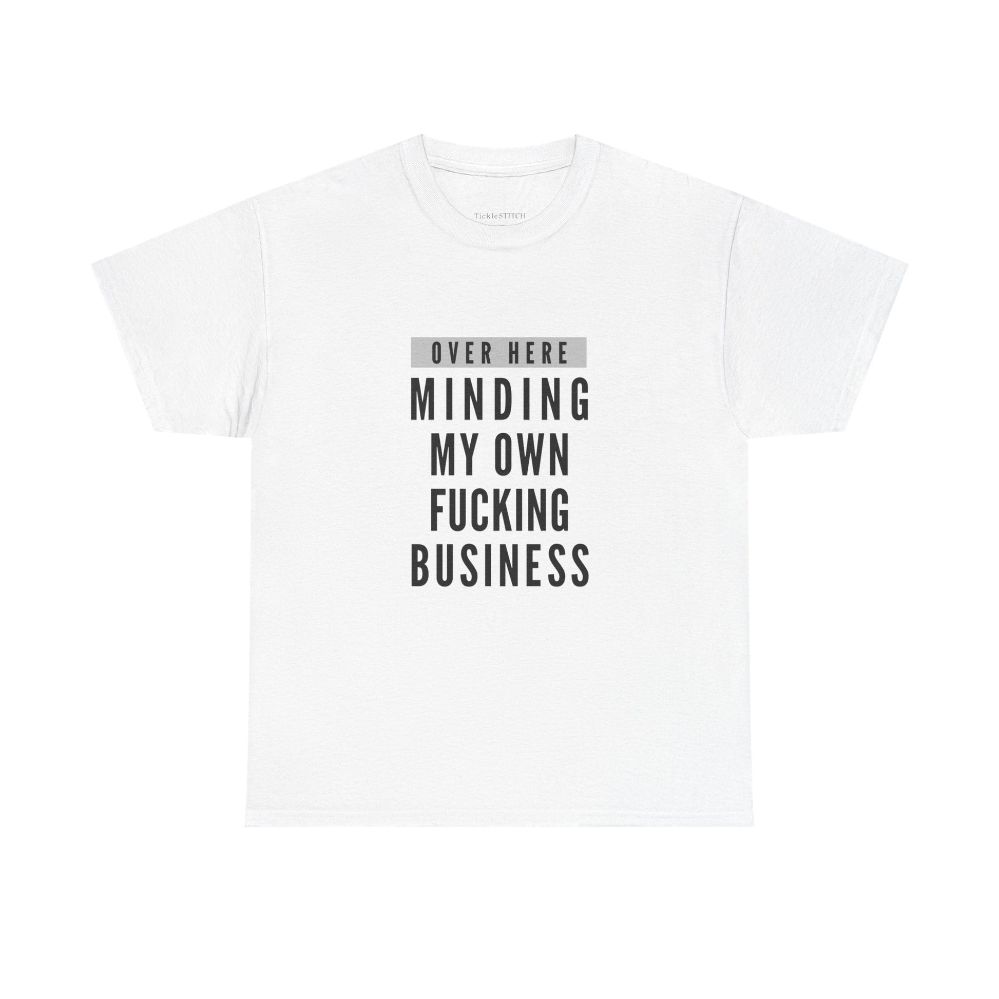 Declare your personal space with the 'Over Here Minding My Own Fucking Business' tee, the ultimate statement for anyone who values their privacy and isn't afraid to say it. This offensive tee is perfect for those days when you just want to be left alone, making it clear you're staying in your lane and expect others to do the same. It's more than just an inappropriate shirt; it's a bold act of boundary setting, a humorous yet firm way to advocate for your personal boundaries. Ideal for individuals with antisocial humor or anyone who champions privacy protection, this shirt lets the world know you're focused on your own fucking business. Wear it to express your need for personal space, to subtly tell people 'don't bother me,' or simply as a funny, direct way to say 'mind your own business.' This leave alone shirt is a must-have for anyone who appreciates a bit of fuck off humor in their wardrobe, ensuring your message is loud and clear without saying a word.