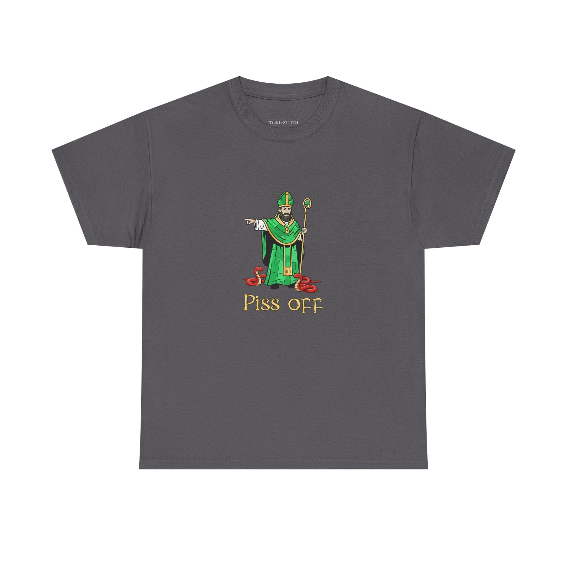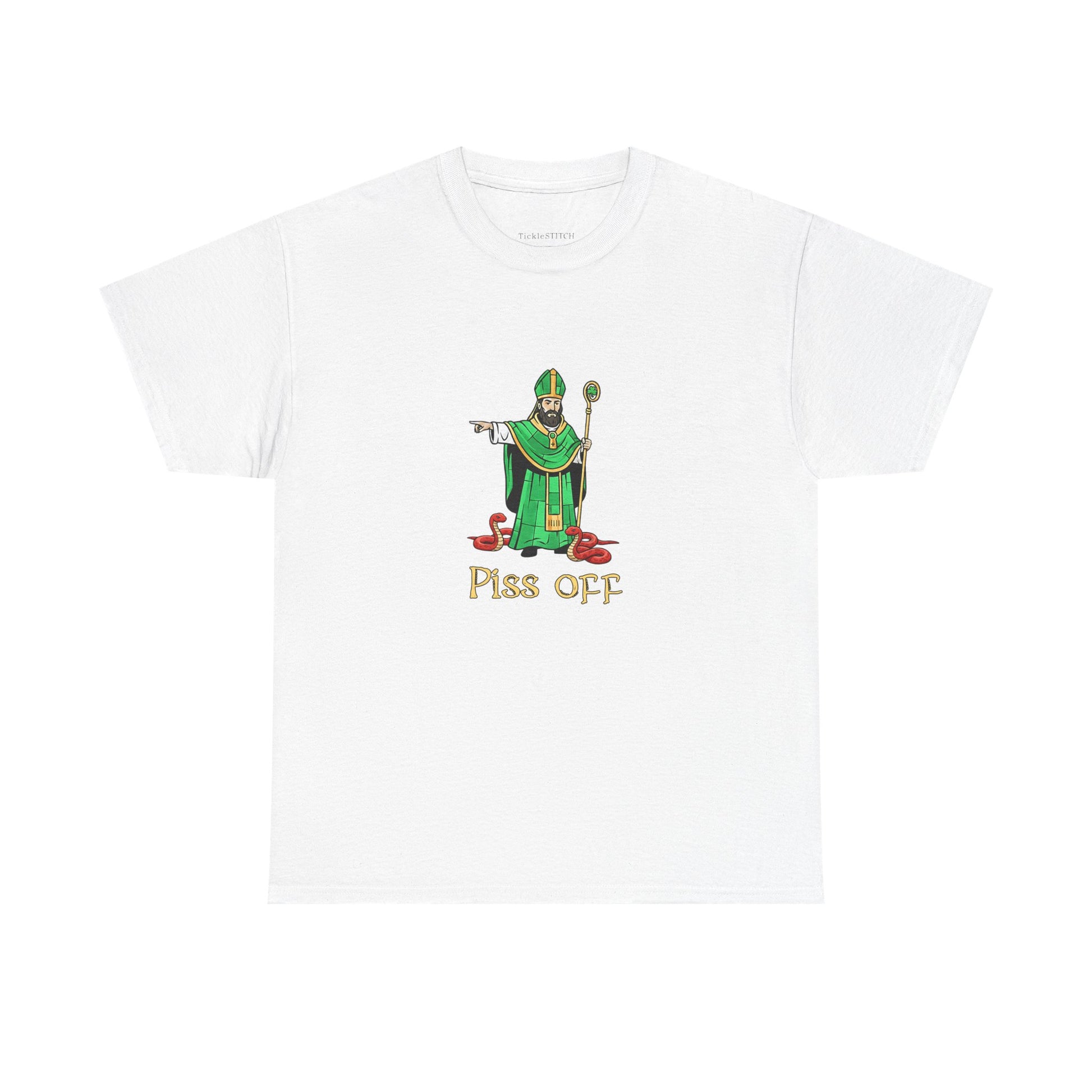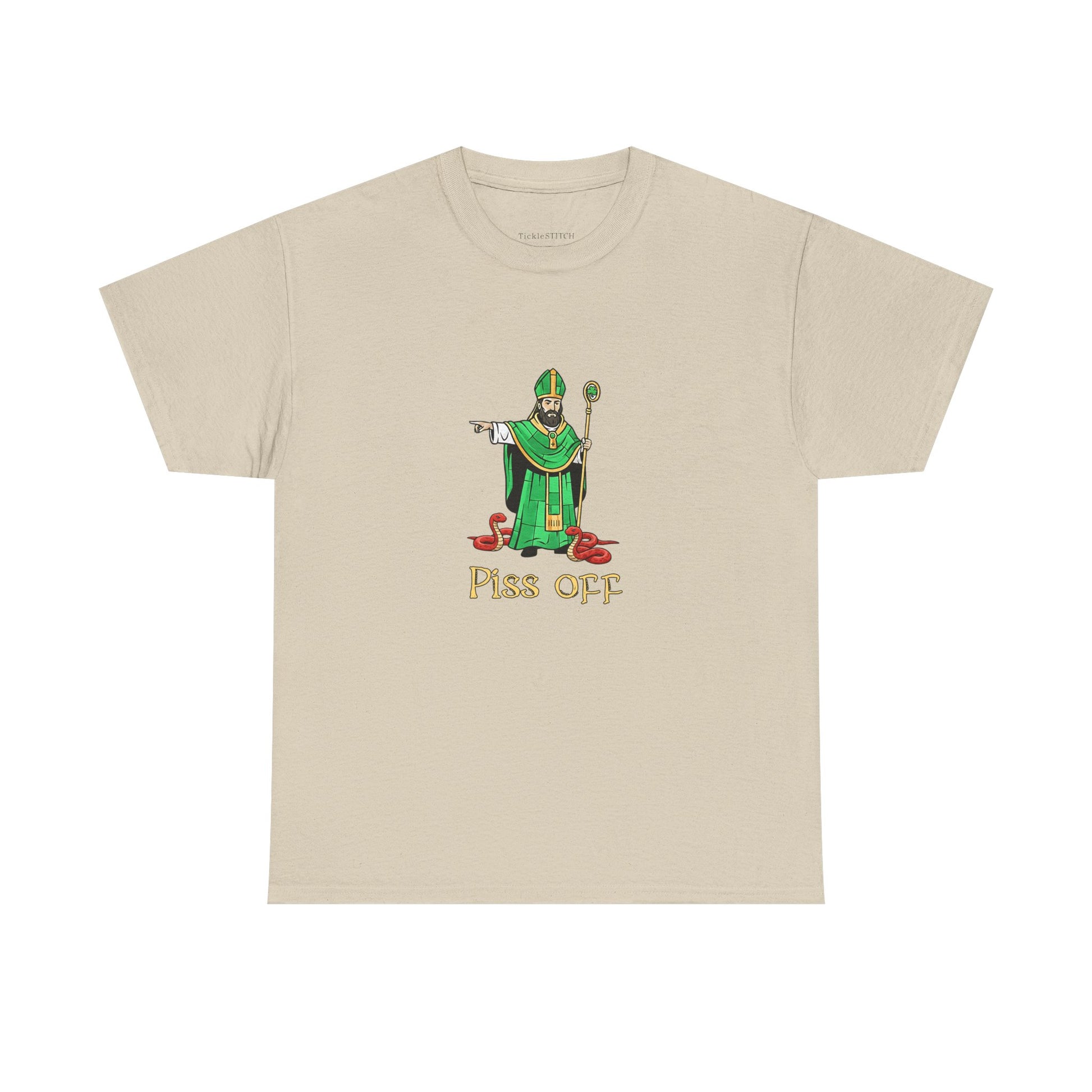 Step into the festive spirit of St. Patrick's Day with our unique graphic tee, featuring a hand-drawn illustration of the patron saint in a moment of authoritative sass, banishing those pesky snakes with a dismissive gesture. This design captures the essence of religious parody with a touch of catholic humor, rendered in a vintage sketch style with a charming colored pencil texture and detailed linework. Perfect for those who appreciate a rustic aesthetic and artisanal, hand-sketched art, this shirt embodies holy humor and saintly sass, making it an ideal choice for your St. Paddy's celebration. Whether you're coordinating shenanigans, heading to a pub crawl, or simply embracing your Irish pride, this sarcastic Irish graphic tee is a witty conversation starter. It's more than just green apparel; it's a statement of cultural humor and festive fashion, celebrating the Feast of Saint Patrick with an ironic twist. Show off your luck of the Irish and enjoy the holiday spirits in this custom-designed, vibrant green shirt, a perfect holiday gift for anyone who loves unique slogans and a good laugh on March 17th.