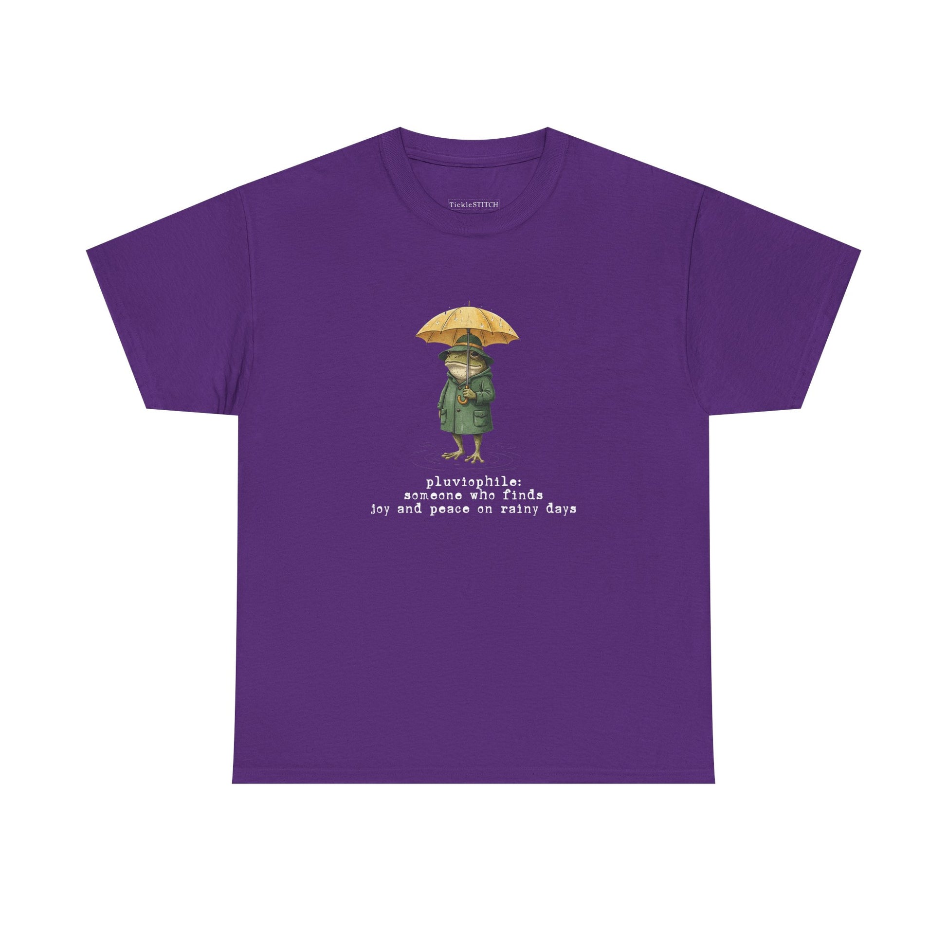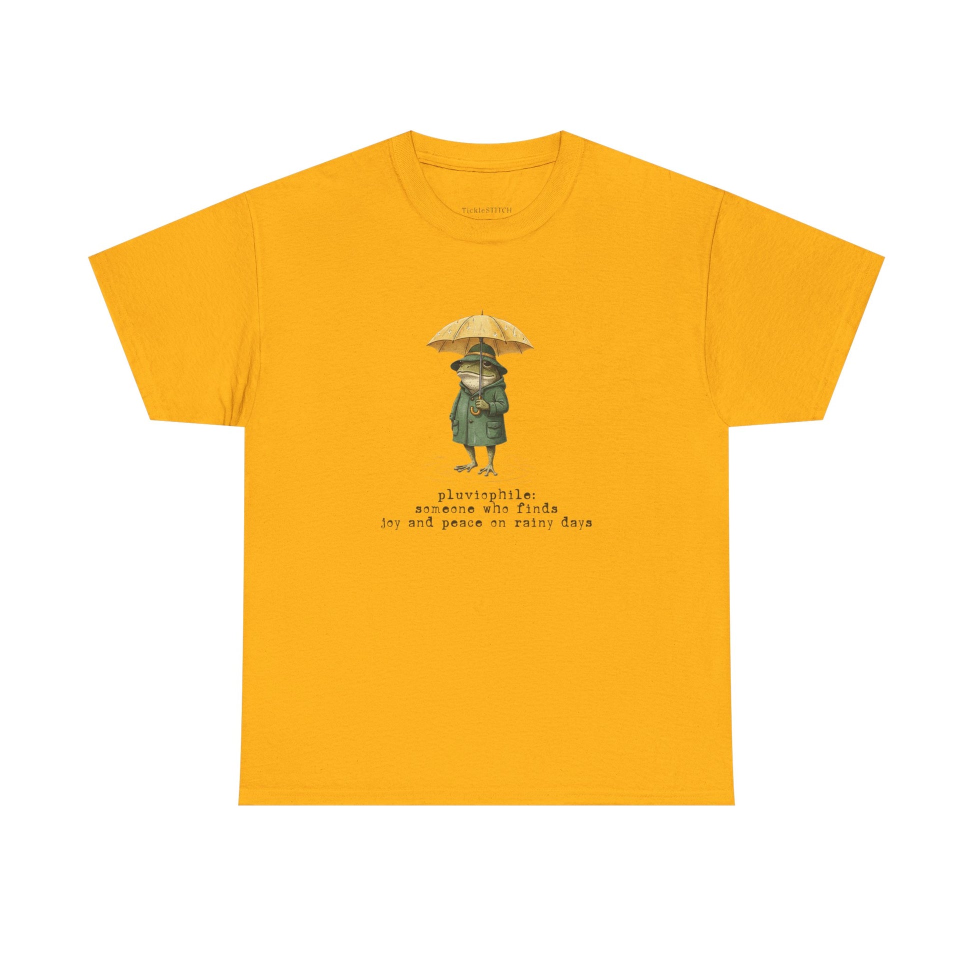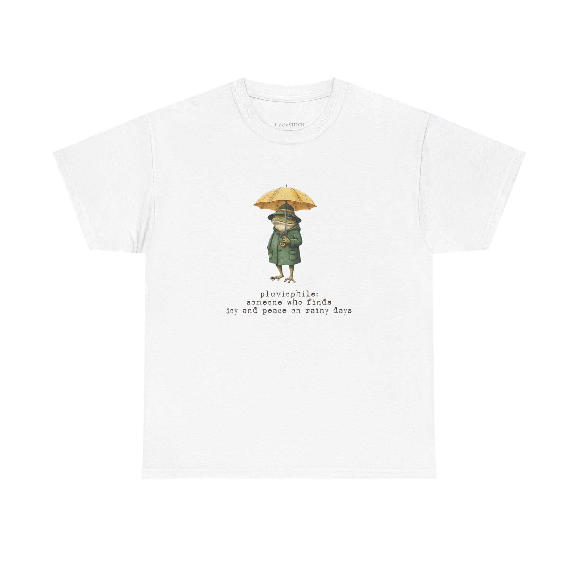 Pluviophile Definition Art Tee: Joyful Frog in Raincoat, Cozy Aestheti