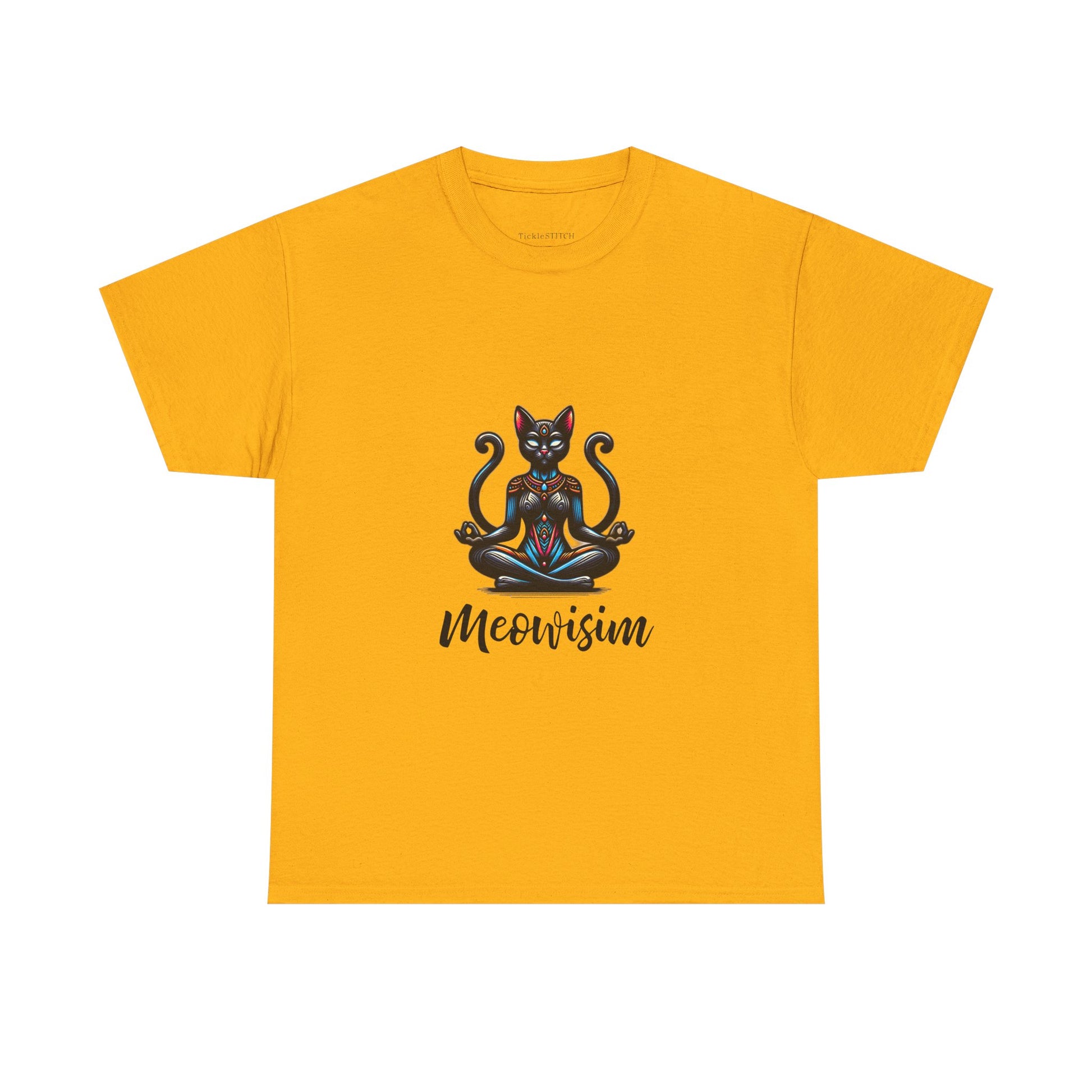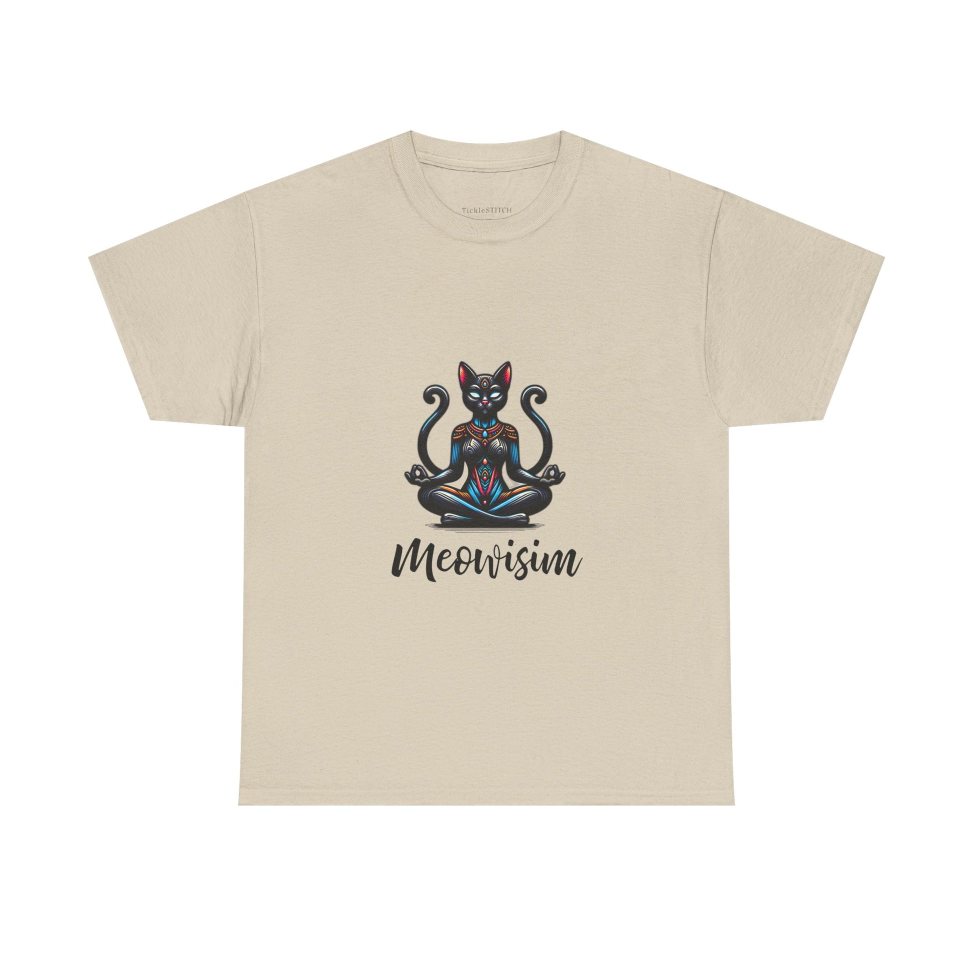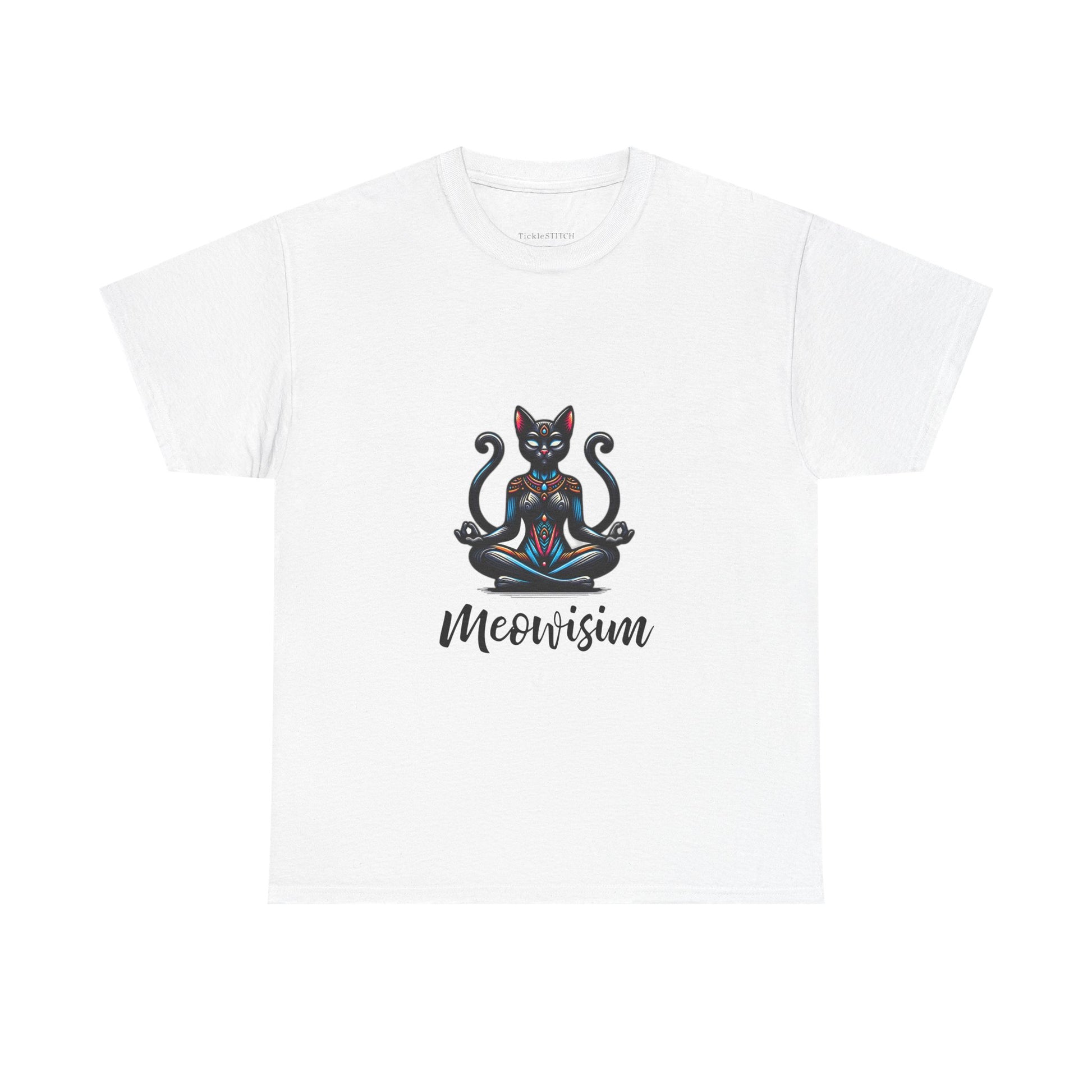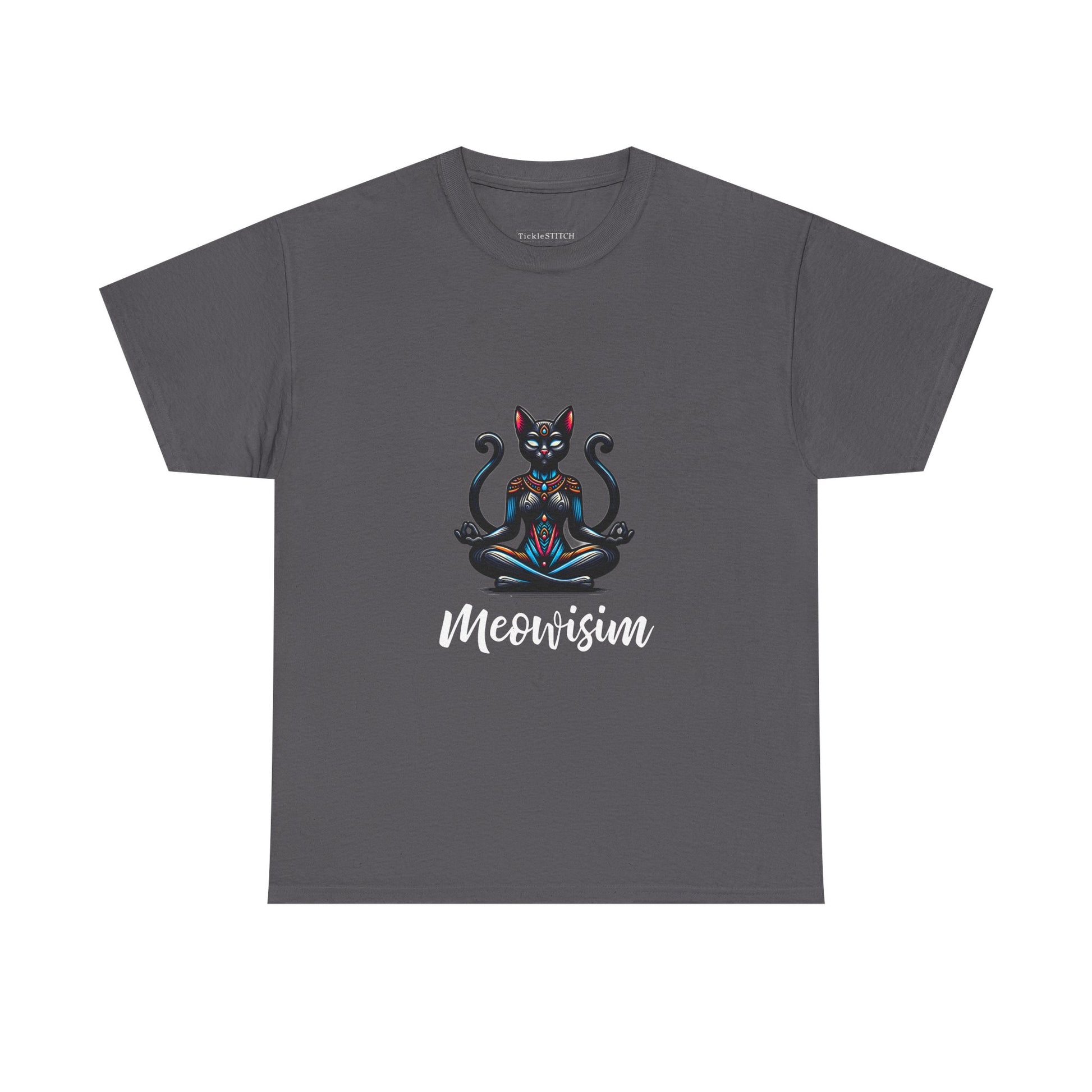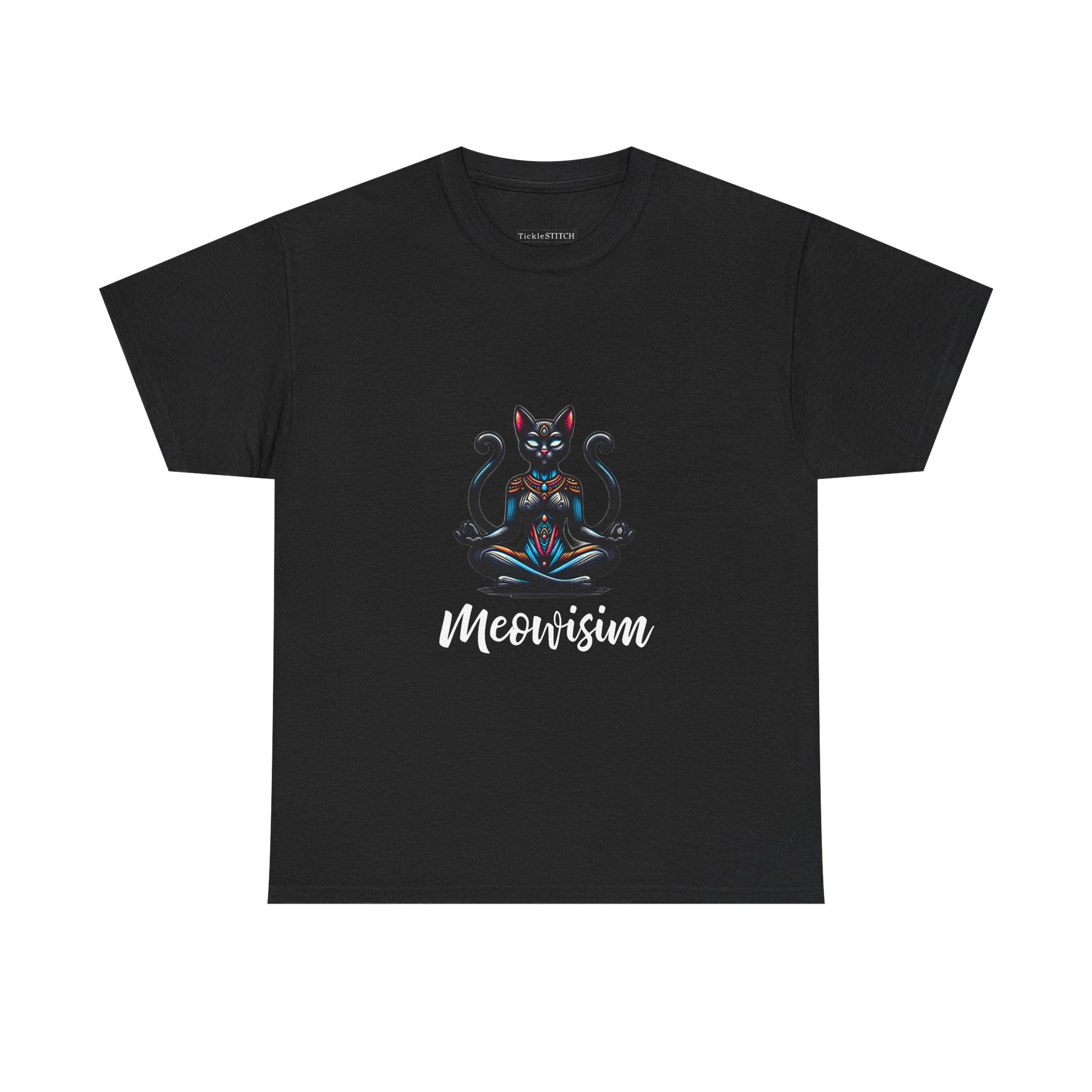 Purr Meowisim Black Two Tails Cat Tee - Mystical Feline Humor