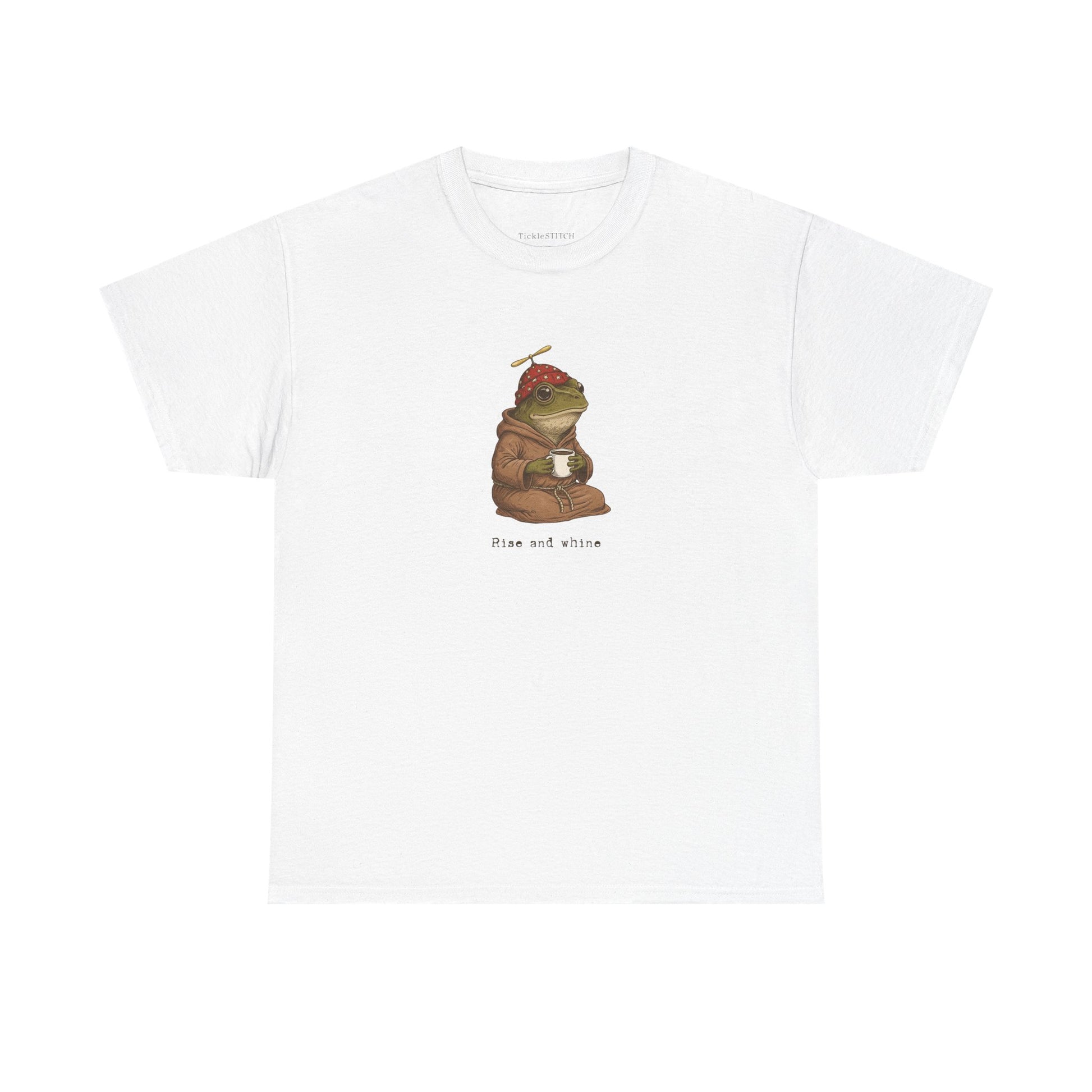 Start your day with a chuckle and a groan with our 'Rise and Whine' t-shirt, perfect for anyone who prefers a dose of pessimistic humor with their morning coffee. This minimalist, punny design captures the relatable struggle of a grumpy adult facing the daily grind, offering a sarcastic parody of the 'rise and shine' mantra. Featuring a charmingly grumpy frog in a wizard robe, holding a coffee, this unique graphic tee blends cottagecore aesthetic with cynical morning vibes. It's an ideal gift for him or her, for the coffee addict, the anti-hustle advocate, or anyone with low motivation and a love for quirky, hand-drawn animal art. Embrace your inner lazy day energy and let this funny frog shirt express your morning mood, whether you're a millennial, Gen Z, or just appreciate simple humor and a good whine. This amphibian humor tee is more than just a shirt; it's a statement for those who navigate daily struggles with a touch of irony and a lot of caffeine. Perfect for a funny alarm clock alternative, it's a unique t-shirt design for frog lovers and chaos coordinators alike, making every morning a minor disaster worth smiling about.
