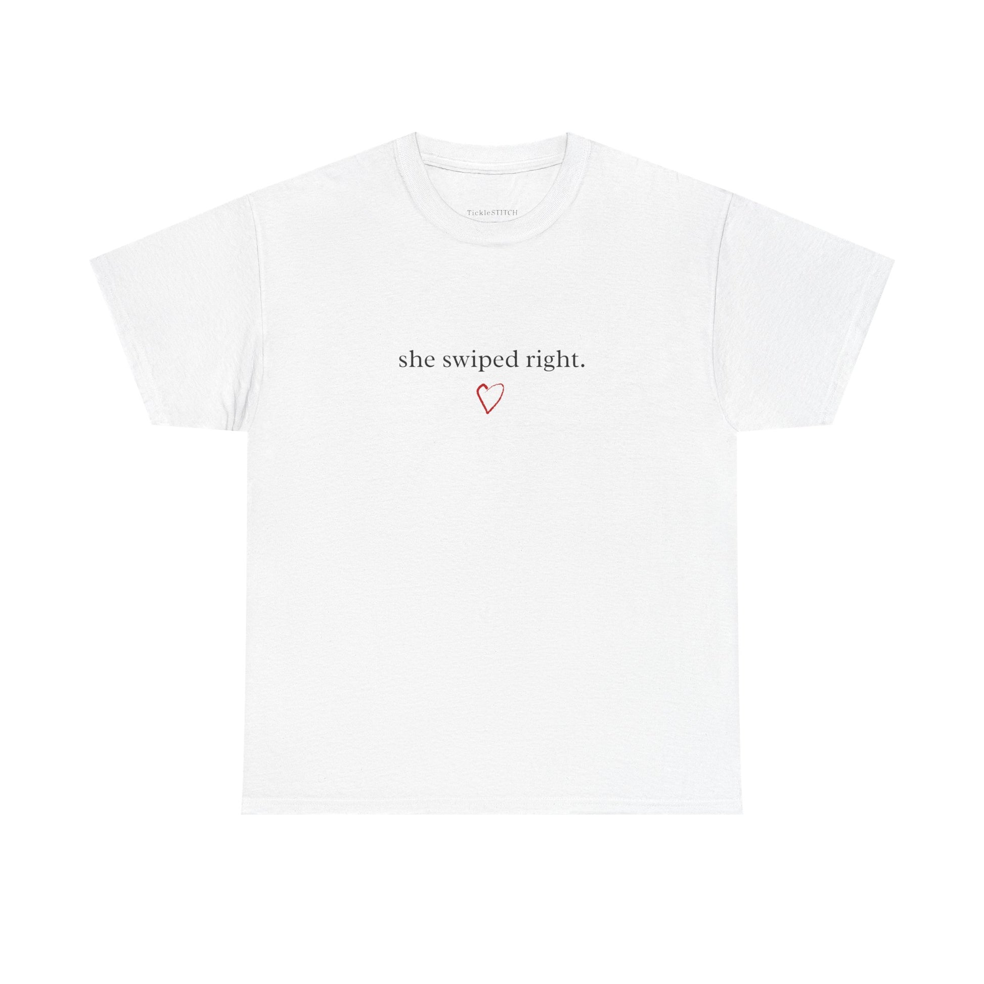 Celebrate modern romance and the thrill of finding your soulmate with our 'She Swiped Right' design, perfect for Valentine's Day or any day you want to express affection. This lovely piece captures the essence of a sweet connection, adorned with subtle nods to hearts, love, and the magic of a blossoming relationship. Imagine wearing this on a cozy date night, sharing smiles and creating new memories. It’s an ideal gift for your sweetheart, an admirer, or even a friend, symbolizing togetherness and devotion. The design evokes the charm of Cupid's arrow, the beauty of roses and flowers, and the joy of receiving a thoughtful card or a bouquet of affection. With its vibrant pink and red hues, it embodies the warmth of hugs and kisses, making it a truly special item to cherish. Whether it's for February's romantic celebrations or simply to show kindness and love, this piece is a delightful way to honor that unique bond, bringing a touch of dream-like romance to your everyday style. It's more than just apparel; it's a declaration of a beautiful, modern love story, full of sweet moments and heartfelt devotion.