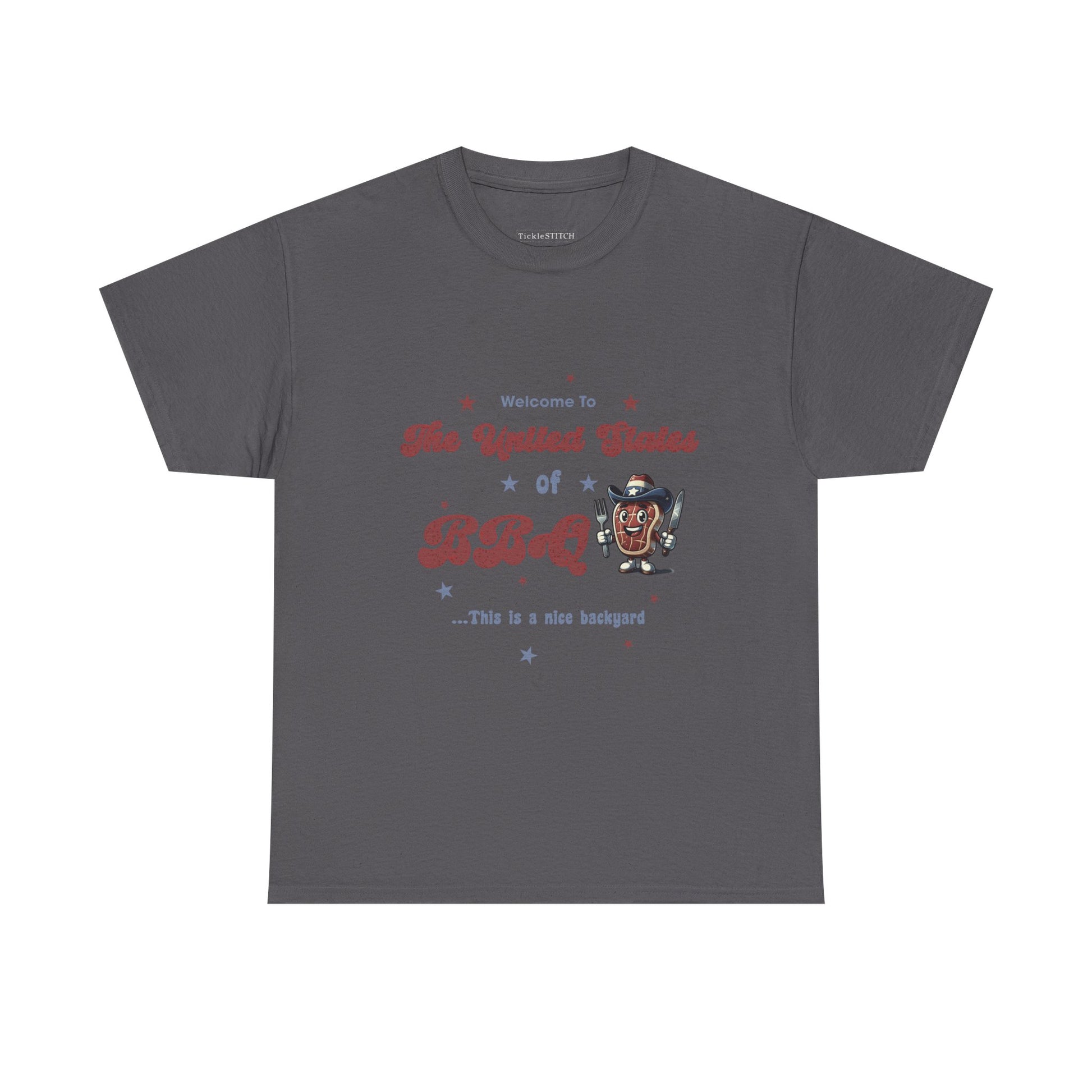 Show your true colors and passion for the grill with our 'United States of BBQ' shirt, the ultimate patriotic BBQ apparel for every American cookout enthusiast. This shirt is perfect for celebrating Independence Day BBQ, Fourth of July BBQ, and Memorial Day BBQ, making you the star of any backyard gathering. Embrace the spirit of American grilling with a design that proudly features stars and stripes, embodying the red, white, and blue BBQ tradition. Whether you're a seasoned American pit master or just love a good USA BBQ, this tee is designed for comfort and style. It's ideal for patriotic grilling sessions, independence grilling events, or simply enjoying a patriotic barbecue with family and friends. This USA grilling shirt is more than just clothing; it's a statement of national pride and a love for the art of the smoker, perfect for any July 4th grilling celebration or patriotic backyard party. Get ready to fire up the grill and represent the United States of BBQ in style.