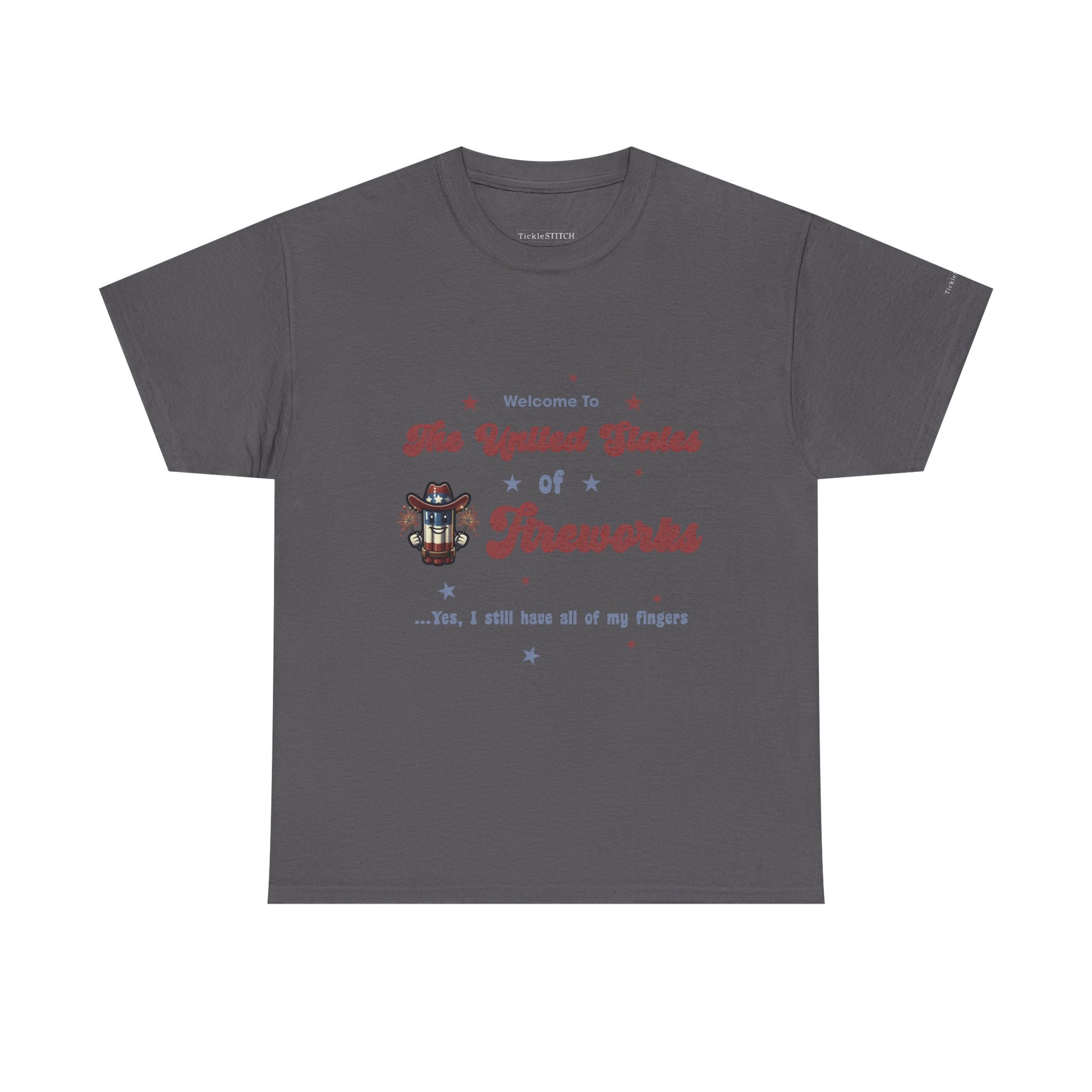 Ignite your patriotic spirit with the 'United States of Fireworks' tee, a vibrant tribute to American independence and celebration This shirt captures the exhilarating essence of Fourth of July fireworks, showcasing a spectacular display of red, white, and blue pyrotechnics that light up the night sky Perfect for Independence Day fireworks events, Memorial Day gatherings, or any occasion where American pride is on full display.