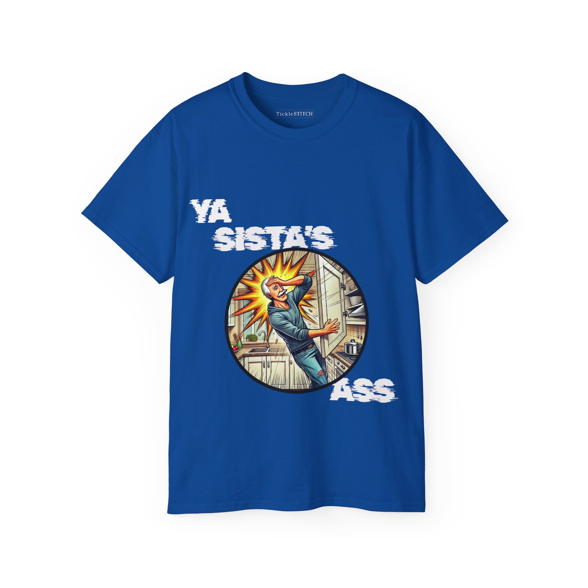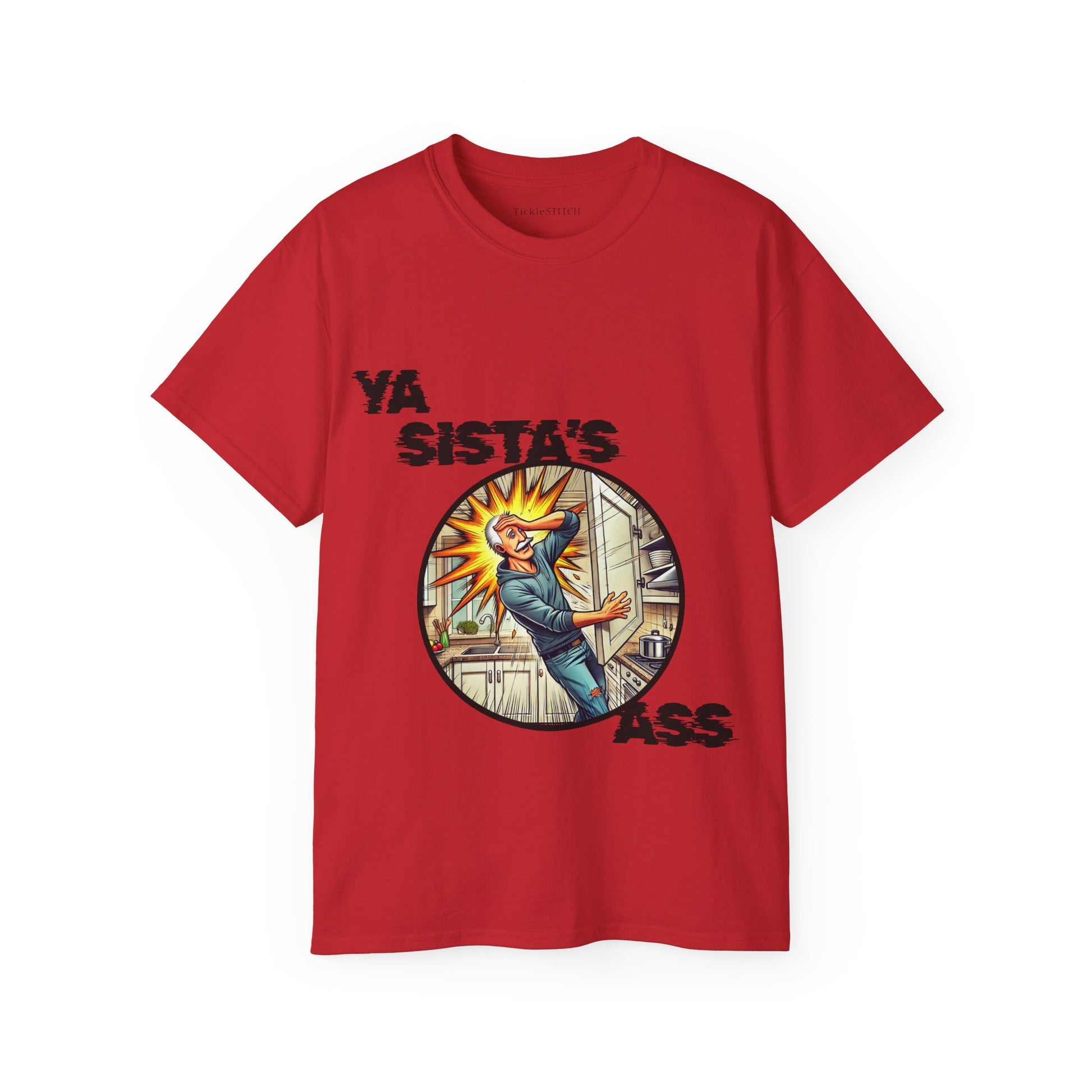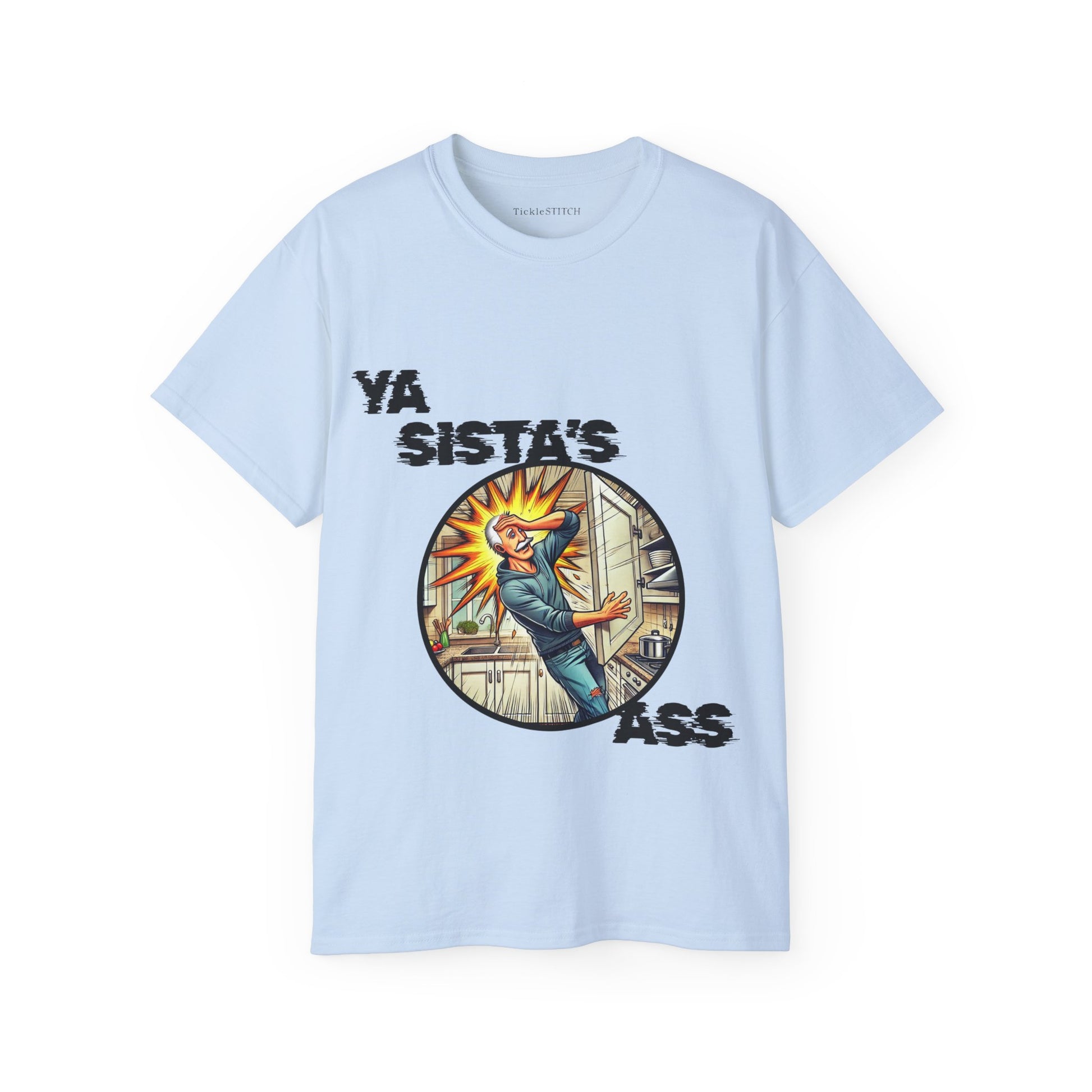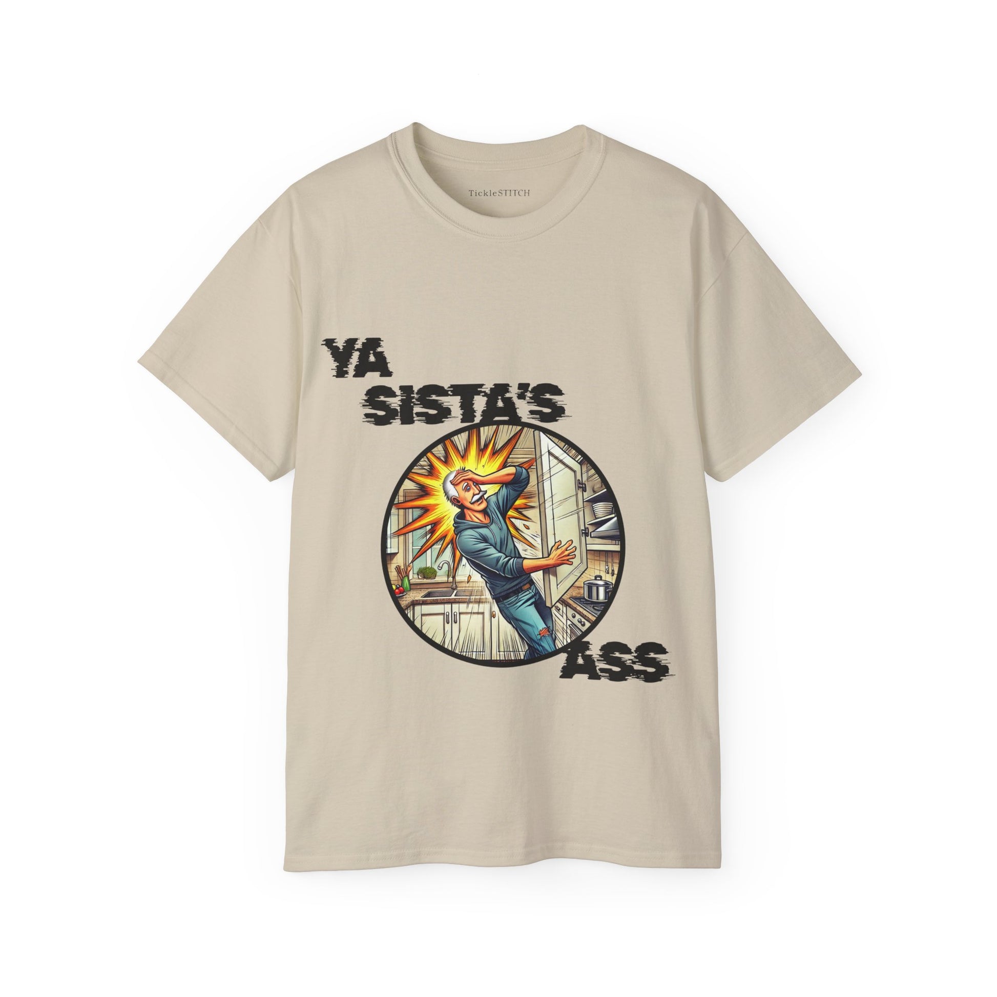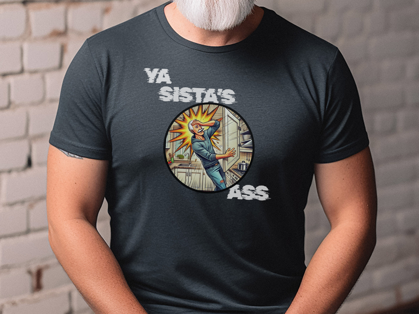 Unleash unforgettable laughter with our 'Ya Sista's Ass' Funny T-Shirt, the ultimate gag gift for the man who appreciates a truly classic, albeit inappropriate, dad joke. This super soft graphic tee is designed for the grumpy old dude, the witty man, or anyone with a keen sense of politically incorrect humor. If he loves dry humor and funny saying shirts, this is it. Perfect for an old man birthday gift, retirement party, or just because, this novelty t-shirt is more than just a shirt; it's a conversation starter.