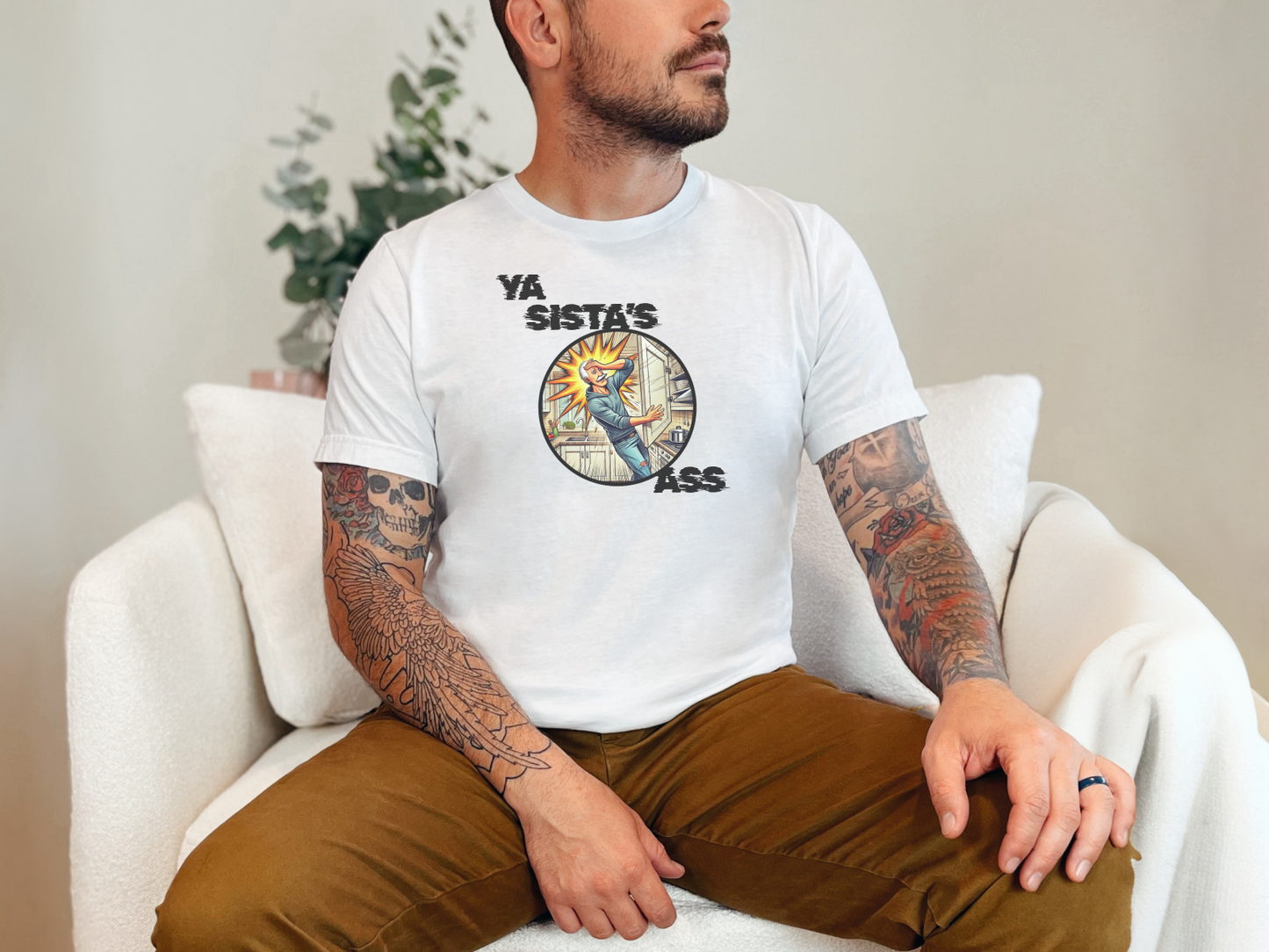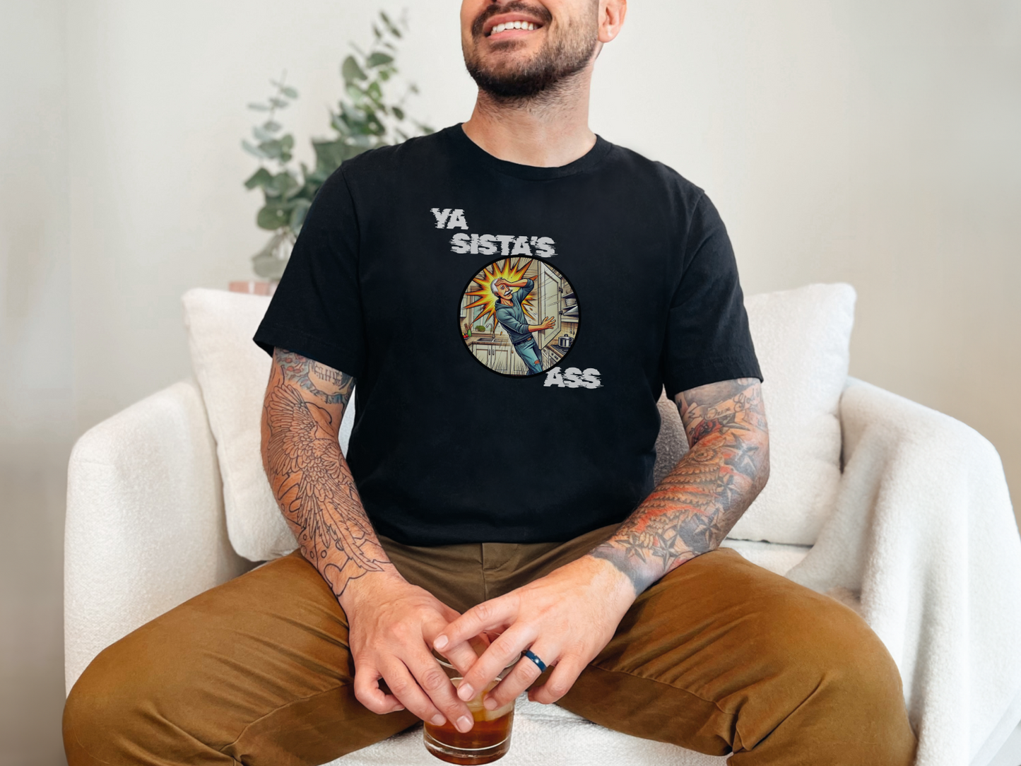 Ya Sista's Ass T-Shirt | Funny Offensive Dad Joke Graphic Tee for Men