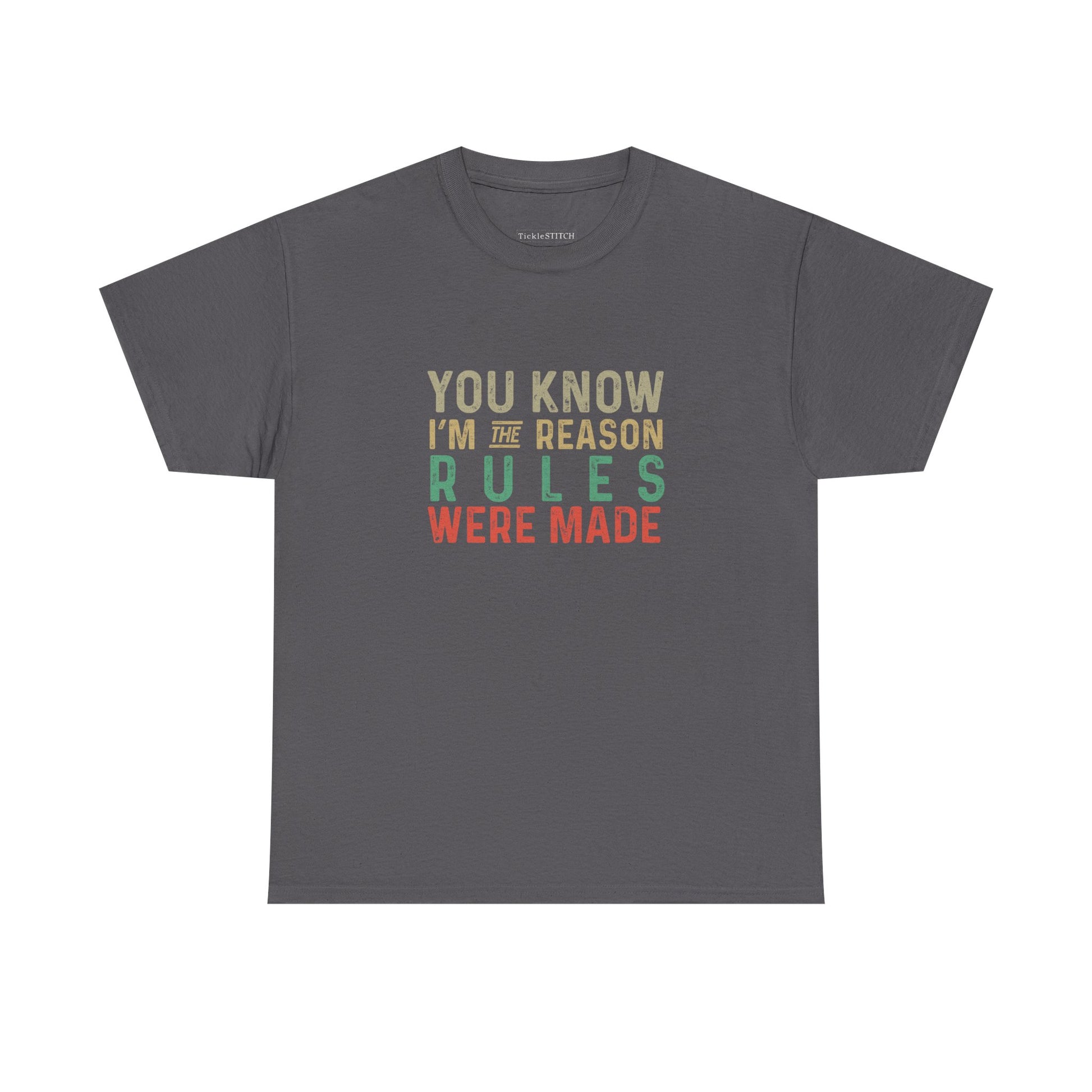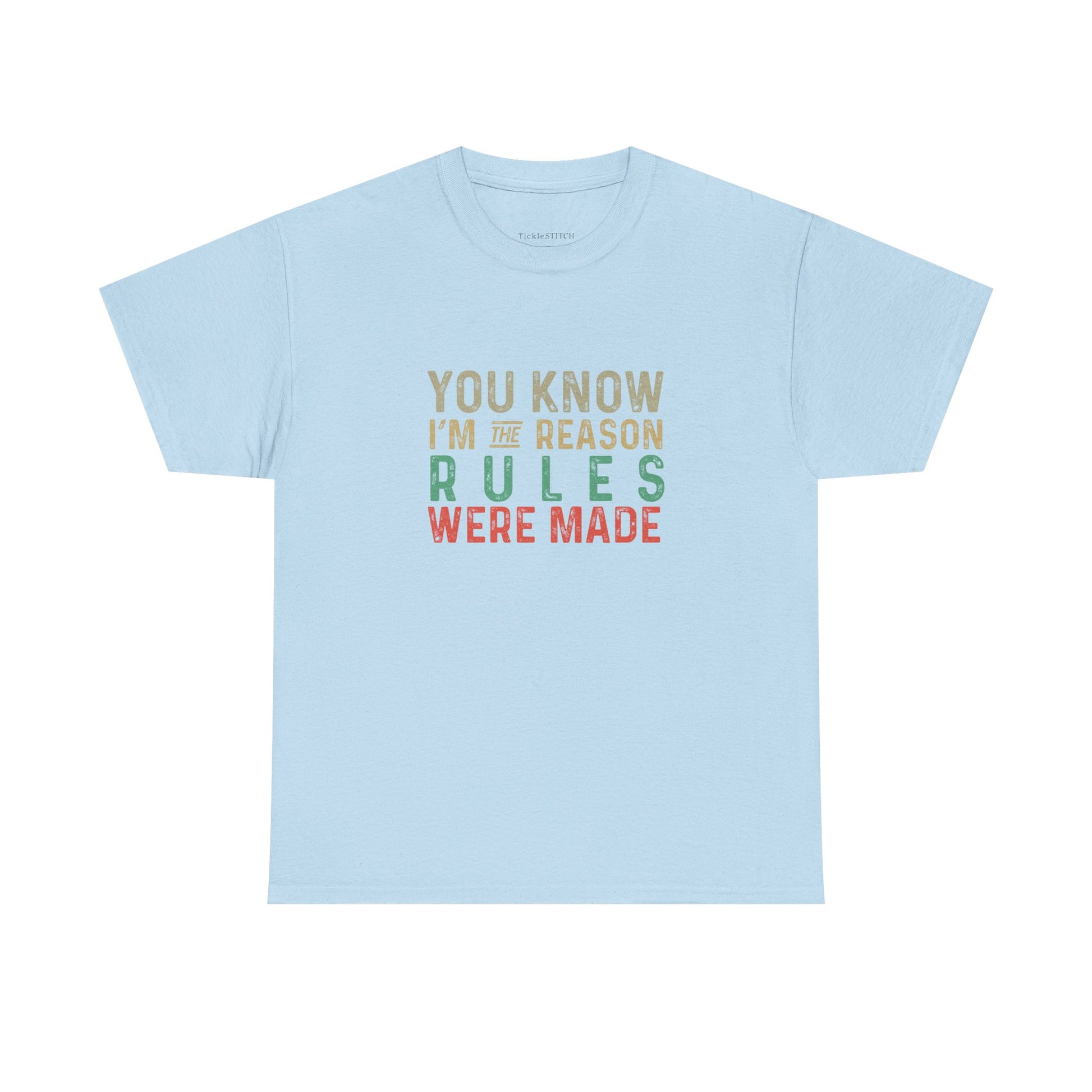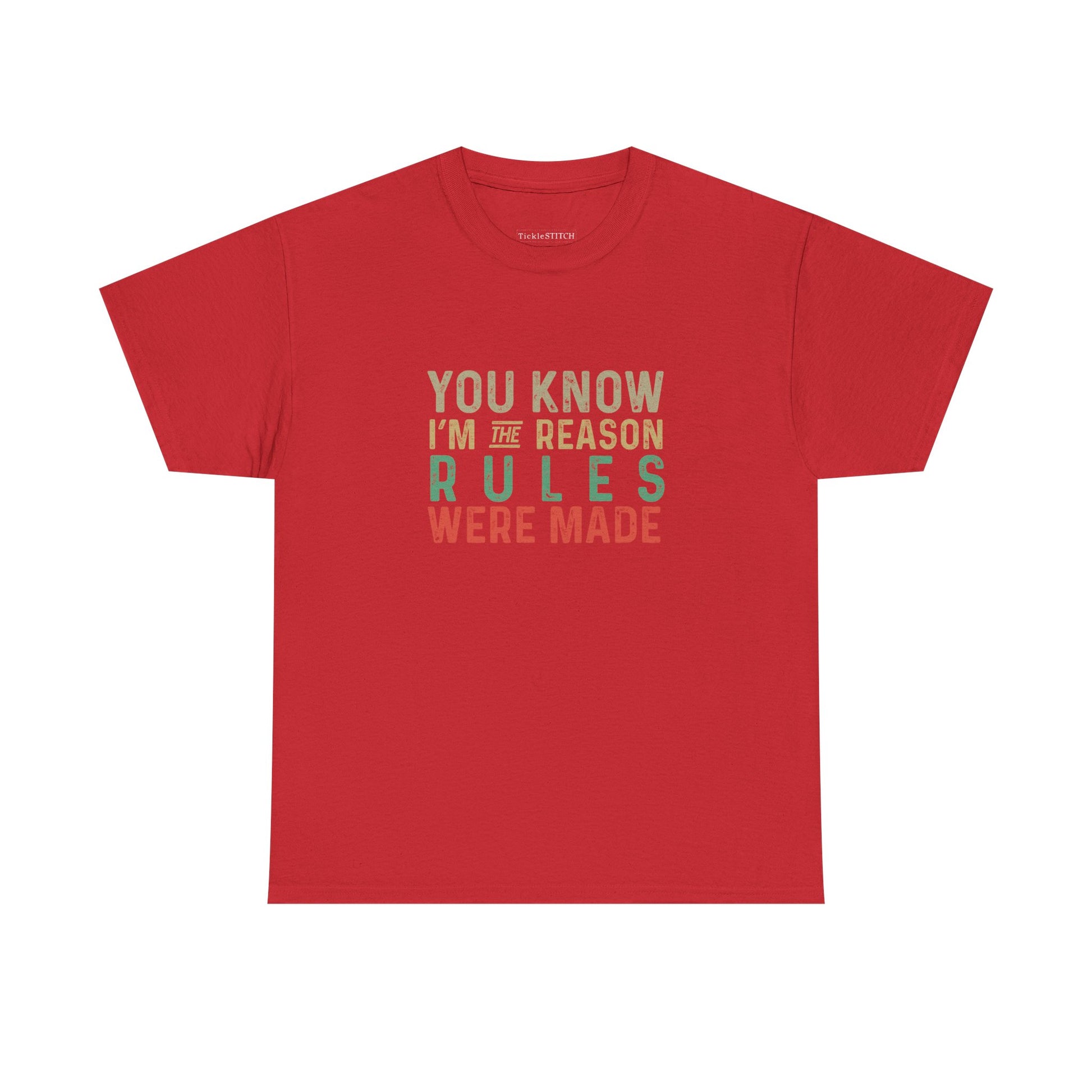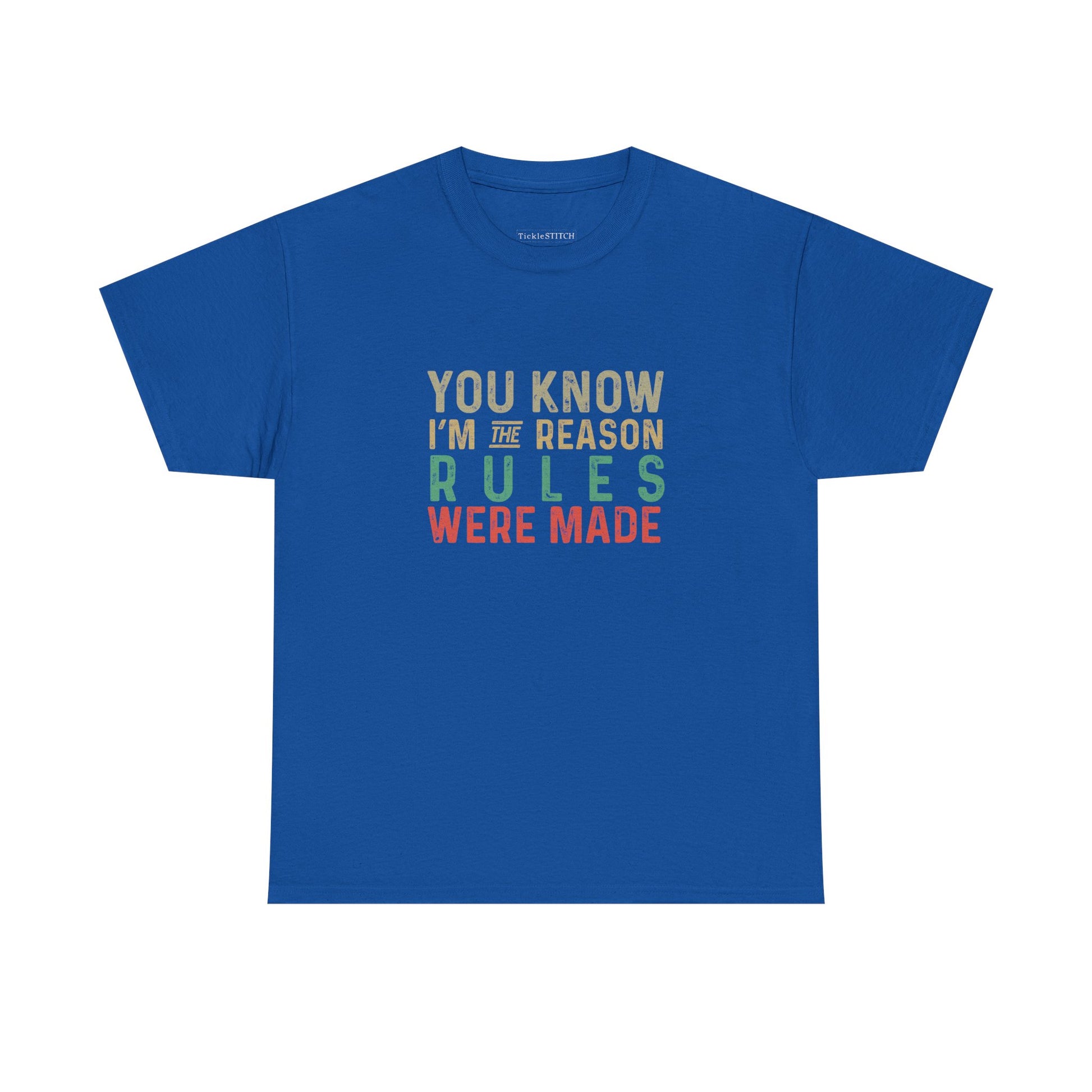 Unleash your inner maverick with this bold and witty tee, perfect for anyone who lives life on their own terms and isn't afraid to challenge the status quo. Featuring the iconic phrase, 'You know, I’m the reason the rules were made,' this shirt is a humorous nod to every rebel, outlaw, and trouble maker out there. It embodies a fearless, wild, and free spirit, celebrating the unconventional and non-conformist attitude that sets you apart. Crafted for those with a vibrant presence and an undeniable impact, this design speaks volumes without saying a word. Whether you're known for your sass, snarky wit, or simply a relatable defiance against everyday authority, this tee captures that unique energy. It's more than just clothing; it's a statement piece for the authentic, original, and legendary individual who brings a touch of mischief and humor to every situation. Stand out from the crowd and let your true colors shine with this adventurous and daring garment, designed for those who truly make their own rules and leave a lasting impression.